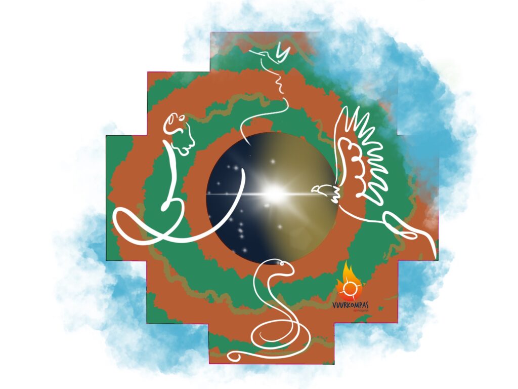 Het medicijnwiel heeft elke windrichting een archetypisch dier die de krachten van het wiel vertegenwoordigen: